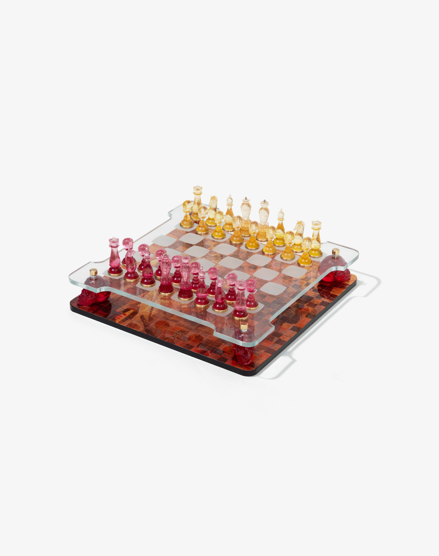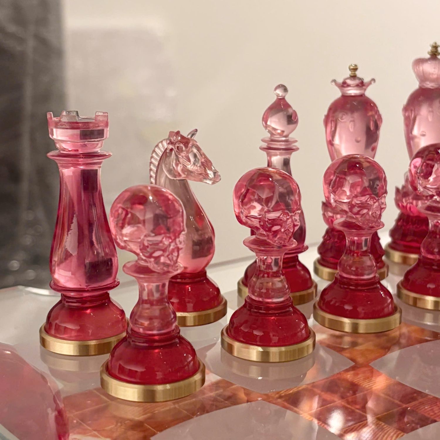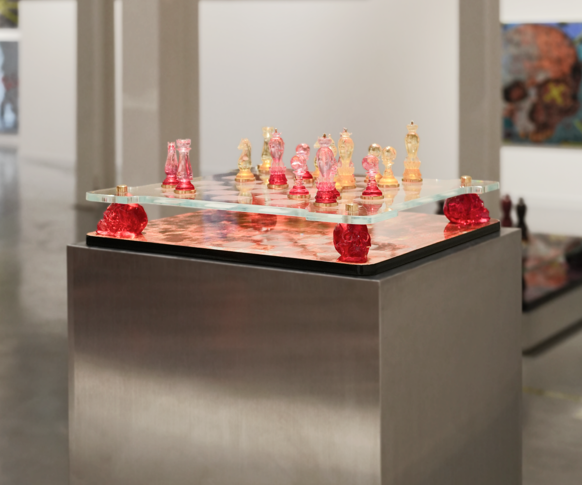 Bộ cờ được thiết kế để trở thành tâm điểm thu hút mọi ánh nhìn. Với cấu trúc hai tầng, mặt gỗ sơn mài được nâng đỡ bởi các chân đế đầu lâu làm từ resin trong suốt, tạo nên hiệu ứng thị giác đầy kịch tính và sang trọng. Tác phẩm không chỉ là món đồ trang trí mà còn là bộ cờ mang tính chiêm nghiệm, khơi gợi những cuộc đối thoại sâu sắc về triết lý Thiện – Ác, đồng thời thể hiện chiều sâu tri thức và gu thẩm mỹ riêng biệt cho không gian sống.